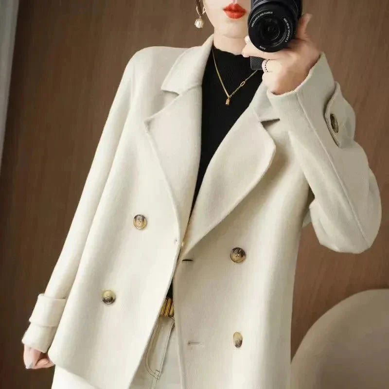 ✔️ Estilo Clássico e Chique: Deslumbre-se com a sofisticação atemporal deste casaco curto.
